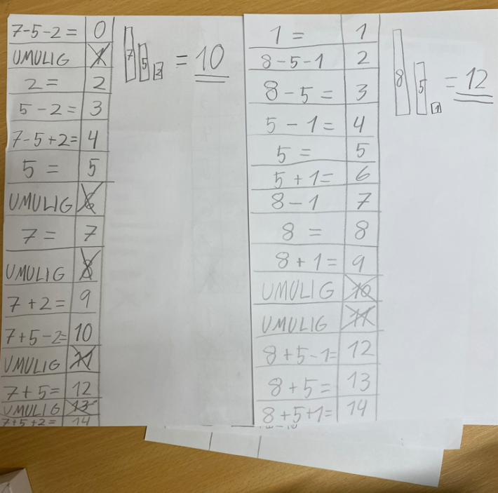Gjennom denne oppgåva får elevane øving i å kombinere tal, addere og subtrahere, slik at dei får gitte tal til svar.