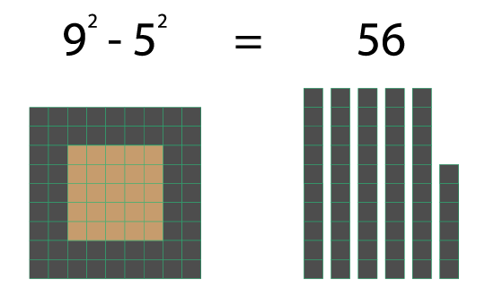 Hvis vi kvadrerer to tall med en differanse som er et oddetall og finner differansen mellom kvadratene, vil den være et oddetall. Med andre ord, - hvis vi kvadrerer et partall og et oddetall vil differansen alltid være et oddetall.