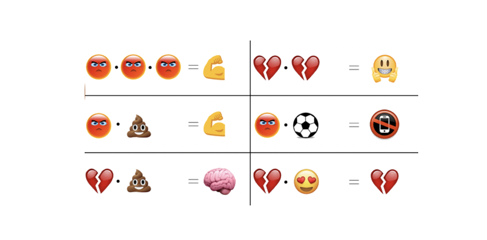 - Hva kan du si ut fra den første multiplikasjonen, med tre sinna-emojier og en stram muskel?