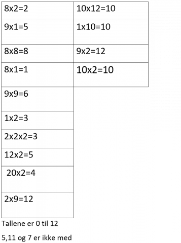 Vi har også fått inn mange gode forslag til nye oppgaver som ligner på denne. Nedenfor finner du en oppgave laget av Erik, 8 år fra Den Norske Skolen Màlaga og ni oppgaver som elever ved Tåsen skole har laget og sendt inn til oss.