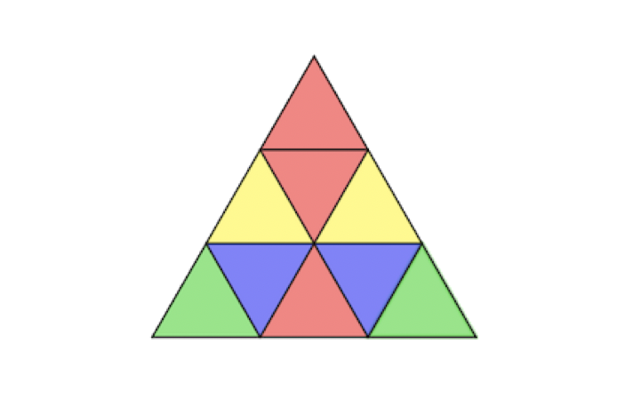 Alternativt kan barna fargelegge de små trekantene med fire farger, der to like farger ikke må ligge inntil hverandre.