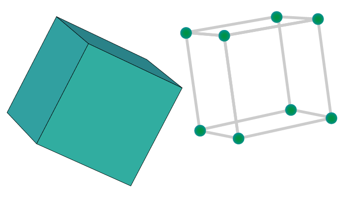 Begynn med å telle flatene på en kube – en stor terning kan være til hjelp – og deretter kantene og hjørnene. En whiteboard-tusj kan brukes til å markere konkretiseringsmateriell for å holde orden på telling av flater, kanter og hjørner.