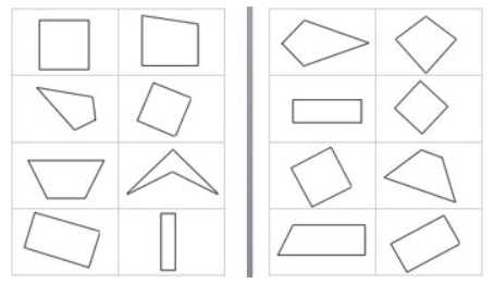 Deretter sender dere kort til andre gruppemedlemmer for å hjelpe hverandre, slik at alle får fire kort som det er en sammenheng mellom (annet enn at de er firkanter).