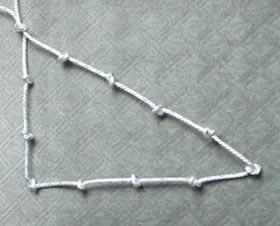 Hvilke andre trekanter kan du lage dersom du bruker et tau som er delt opp på samme måte? Du må ha en knute i hvert hjørne.