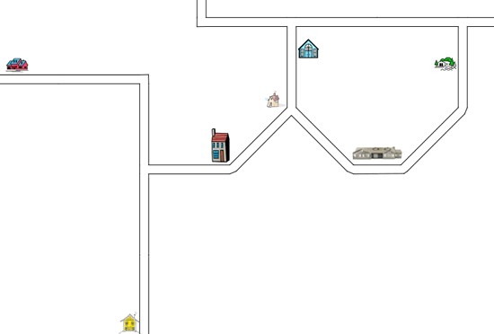 Eldre eller mer erfarne elever kan prøve et tredje kart med forskjellige plasser å starte (start der det er 1, 2, 3, 4 eller 5 gule hus).
