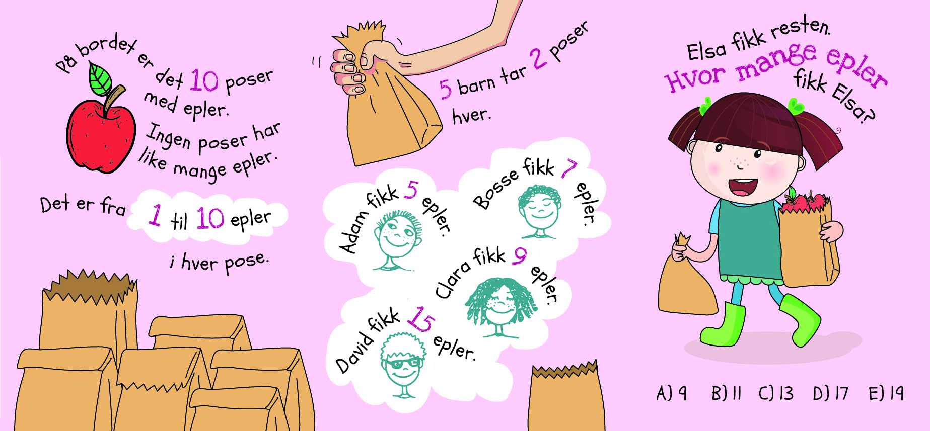 Elevene kan lage egne oppgaver der de bruker konteksten med Elsa og eplene for så å teste oppgavene på en klassekamerat.