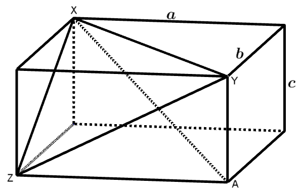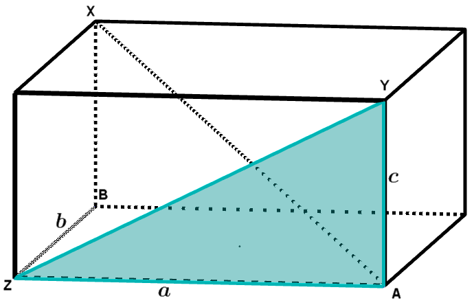 \(\angle YAZ=90^\circ \text{ og } YZ = \sqrt{55},\text{ så } a^2+c^2=\sqrt{55}^2=55\).
