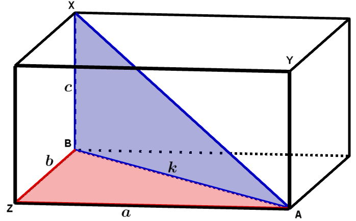 Og k er hypotenus i en rettvinklet trekant med kateter a og b, der \(\angle AZB= 90^\circ\). Så \(k^2=a^2+b^2\).