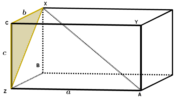 \(\angle XCZ=90^\circ \text{ og } XZ = 8, \text{ så } b^2+c^2= 8^2=64.\)