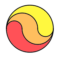 Dette er \(\frac1n\) av det totale arealet \(\pi r^2\), og alle fargene vil dekke en like stor del av sirkelen.