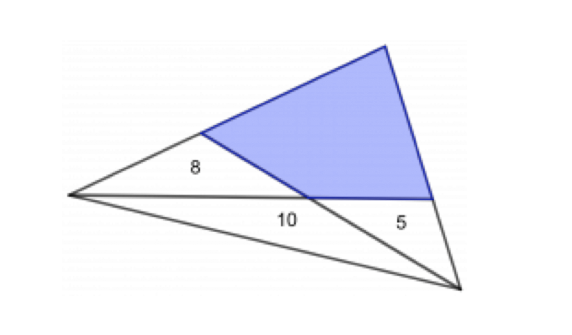 På figuren nedenfor (som ikke er tegnet i riktig forhold), er arealet av tre trekantede områder gitt.