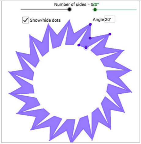 «Snart vil jeg lage en mangekant og velge en vinkel for rotasjonen. Så vil jeg at dere skal forutsi hvor mange kopier av mangekanten som kommer til å bli tegnet før vi lager den endelige figuren.»