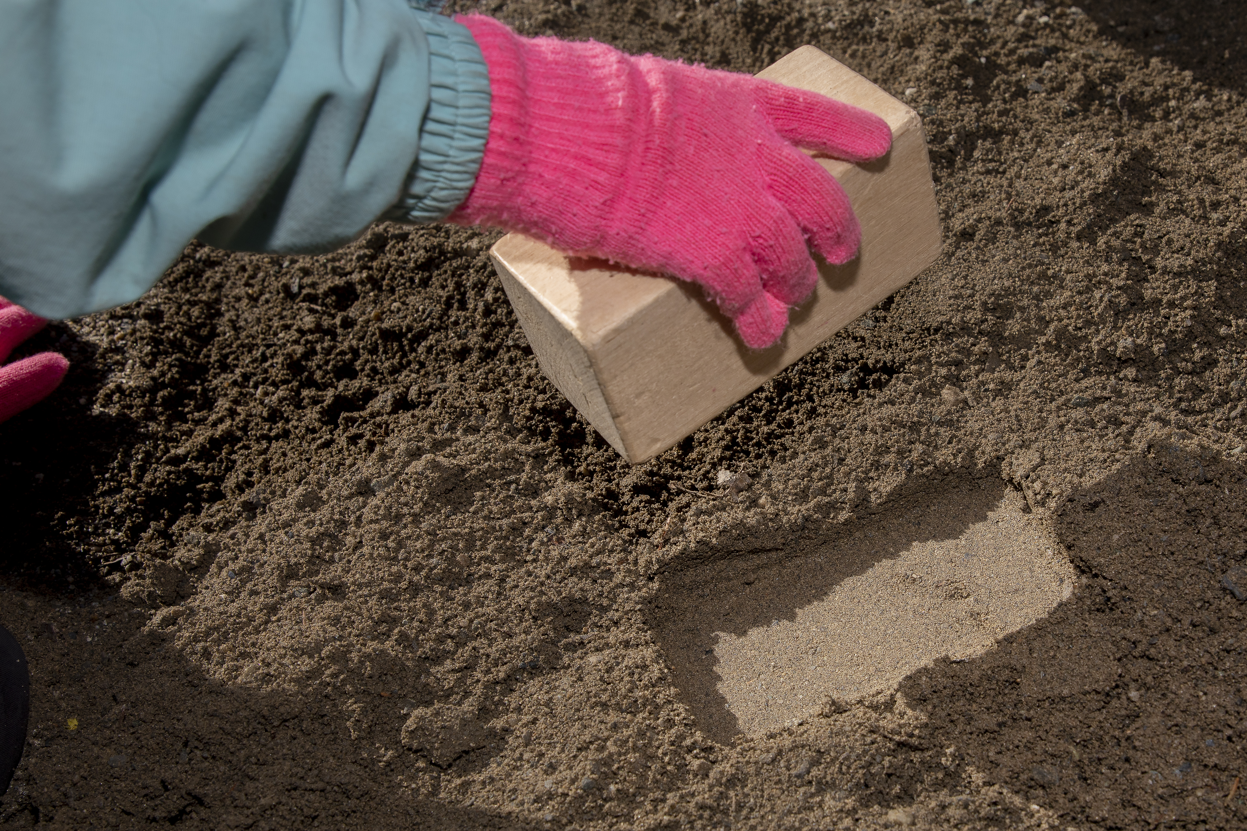Barn liker å lage avtrykk i myke materialer, for eksempel fotavtrykk og håndavtrykk i sand eller leire, kakeformer i deig eller snøengler og spor i snø. Med denne aktiviteten kan vi oppmuntre barna til å bli oppmerksomme på formen til flatene på tredimensjonale objekter. For eksempel vil en sylinder lage et sirkelformet avtrykk når den presses i leira med bunnen ned.