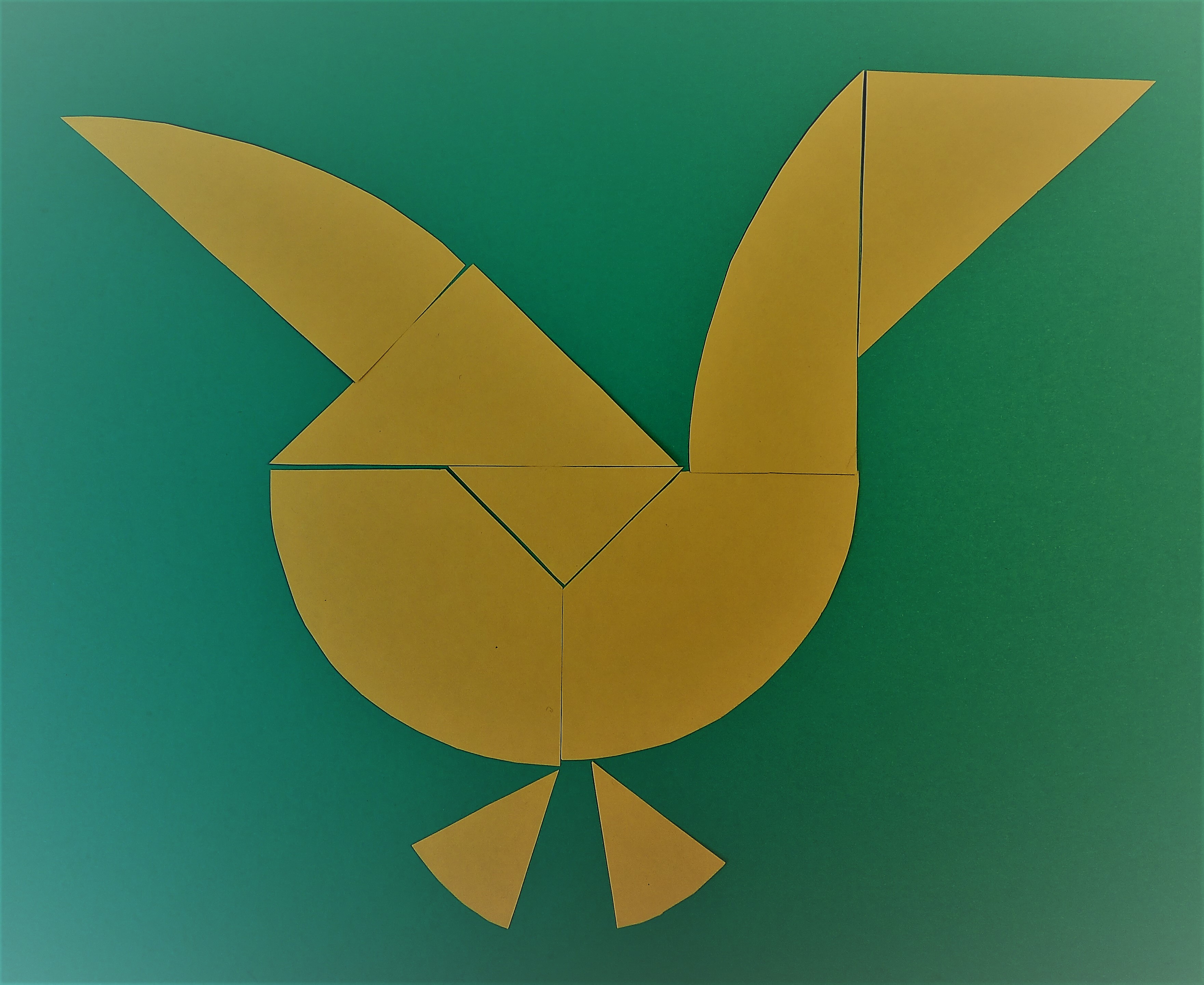 Oppmuntre barna til å lage ulike påskefugler med brikkene sine. De kan bli inspirert av påskefuglene på bildet, eller lage sine helt egne. Bestem om dere vil lime påskefuglene på et vindu eller et ark. Barna kan også tegne, male eller pynte påskefuglene sine.