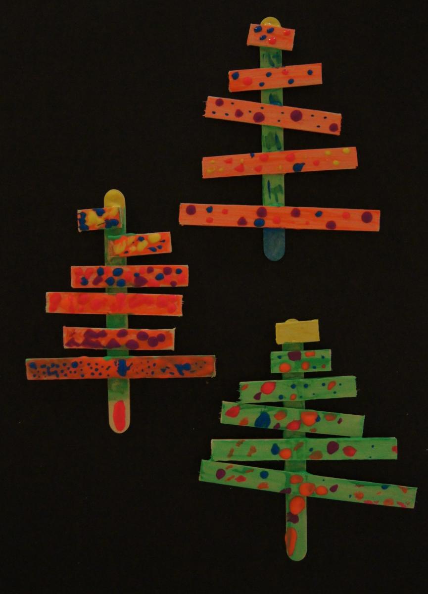 I aktiviteten undersøker og sammenligner barna lengder på ispinner. Barna må resonnere og argumentere for rekkefølgen av pinner til juletreet sitt. Når forskjellen på lengdene er stor nok vil barna se med øyemål hvilken som er kortest og lengst. Når lengdene er mer like må barna legge pinnene ved siden av hverandre for å se forskjellen direkte. Aktiviteten gir mulighet for erfaringer med begreper som bred, bredest, smal, smalest, lang, kort, lengre enn, kortere enn, øverst, nederst, mange og få.