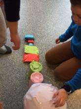 Plasser pakkene i et område der det er lett for barna å leke og drive utforskning med dem. Vær oppmerksom på hvordan barna leker med pakkene. Noen av forslagene nedenfor vil komme fram naturlig i barnas lek, og dere kan da berike aktiviteten med noen av spørsmålene fra tabellen. Dere kan med fordel la pakkene være en del av barnas lekemiljø over tid, og gjøre aktivitetene nedenfor flere ganger for å finne flest mulige måter å sortere pakkene på. Mest sannsynlig vil dere få ulik respons fra barna hver gang dere stiller spørsmål eller gjennomfører aktivitetene.
