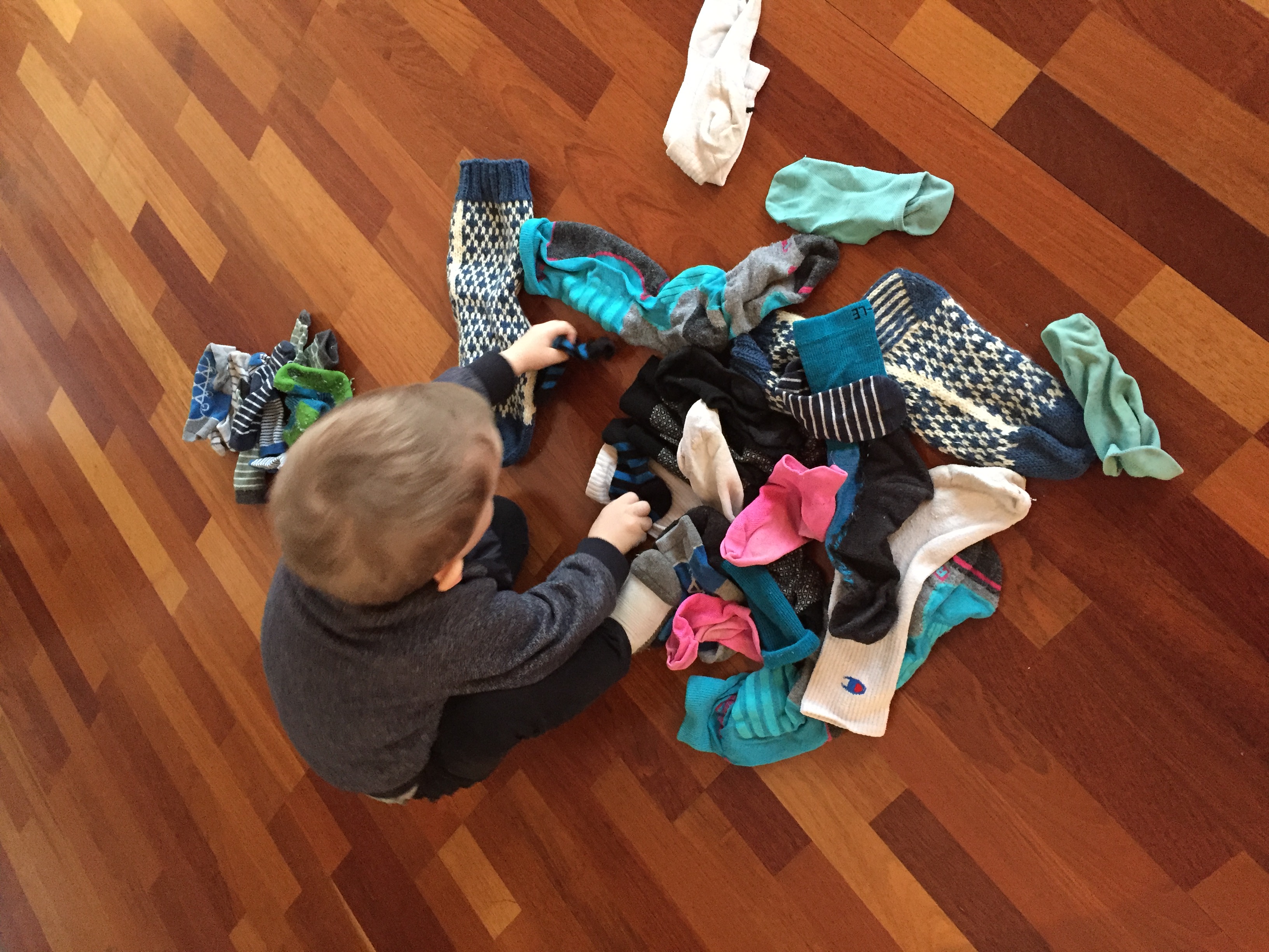 I beskrivelsen av denne aktiviteten er det sokker, men du og barna kan leke med annet tilgjengelig materiell, som votter, sko eller lignende.
