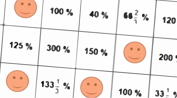 Dersom ingen ledige ruter passer til prosentene spilleren kan lage, legger hun/han brikken på en av rutene med smilefjes. Når alle spillernes brikker er lagt ut, fortsetter spillet ved at brikkene som står på brettet, flyttes til nye posisjoner, dersom spillerne får en annen brøk på brettet. Spillet fortsetter til en av spillerne har fått tre på rad: vannrett, loddrett eller diagonalt. Smilefjesene inngår i tre på rad.