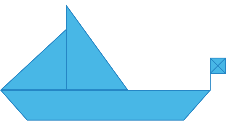 Her ser du biter som sammen blir en seilbåt. Tegn bitene på et ruteark (du kan skrive ut kopioriginalen Seilbåten og bruke bitene på side 2), klipp ut bitene og sett dem sammen til seilbåten. Du kan gjerne lime bitene på et annet ark.
