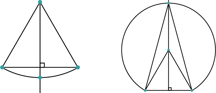 Dette gir riktig løsning, fordi sentrum av den omskrevne sirkelen ligger i skjæringspunktet mellom midtnormalene til sidene i trekanten.