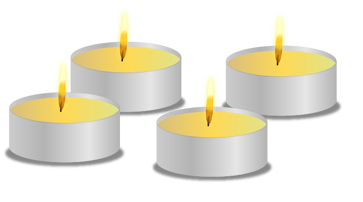 Plasser et lys i hvert hjørne av en likesidet trekant, og det fjerde lyset i sentrum av den omskrevne sirkelen.