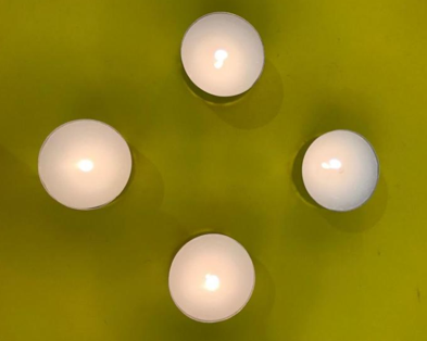 Plasser et lys i hvert hjørne av en likesidet trekant og det fjerde lyset der høyden fra et hjørne treffer grunnlinja.