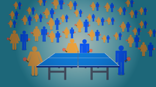 En bordtennisturnering for \(2^n\) deltakere har n omganger. Den er organisert som en knockout-turnering der to og to deltakere tilfeldig velges ut til å spille mot hverandre. Vinnerne av omgangen går videre til neste omgang. For hver ny omgang velges det tilfeldig hvem som skal spille mot hverandre. Siste omgang (n-te omgang) er finalen.