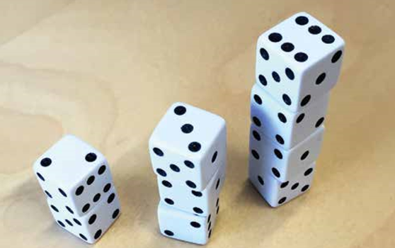 Du skal bygge et tårn ved å sette terninger oppå hverandre. Tell antall synlige sider på alle terningene i tårnet. Bygg tårn med ulike høyder.