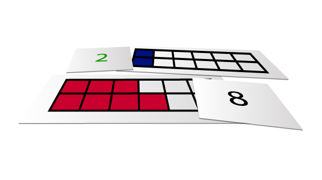 La elevene samarbeide om å pare kortene, slik at hvert tall ligger sammen med det kortet som viser samme antall fargete kvadrat. Deretter gir du gruppene klosser (multilink, centikuber e.l.) og utfordrer dem til å bygge modeller av hvert tall slik at modellene ligner på bildene av de fargete kvadratene. Det kan hende du må demonstrere dette for elevene, og da er det viktig at du setter sammen kubene slik at de former to rader, slik som med tallet 9: