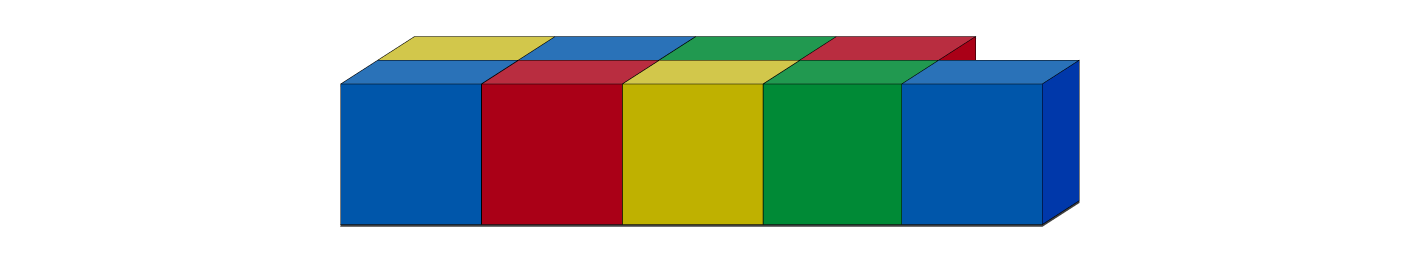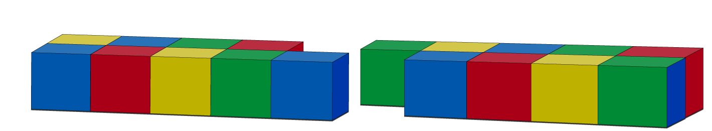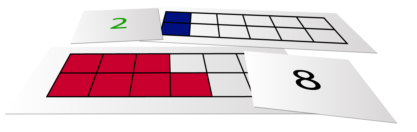 Gruppene legger kortene sine slik at hvert tallkort ligger ved siden av det kortet som har samme antall fargede kvadrat.