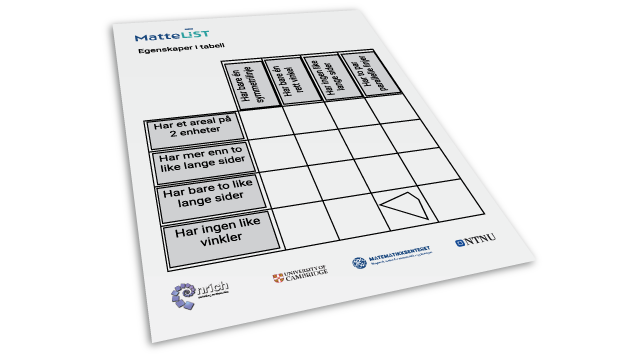 Denne oppgaven tilbyr en annerledes og interessant kontekst der elevene skal vurdere egenskapene til forskjellige firkanter (eller trekanter). Oppgaven har spesielt fokus på om kombinasjoner av flere egenskaper er mulig.