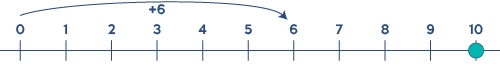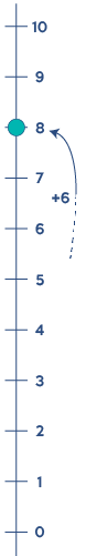 Etterpå begynner Tom på 0 igjen. Han gjør et hemmelig hopp oppover tallinja. Så gjør han et hopp på 6 og lander på 8.