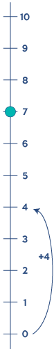 Lea gjør først et hopp på 3 langs tallinja, og så et hopp på 4. Hvor lander hun?