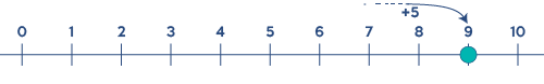 Etterpå begynner Lea på 0 igjen. Hun gjør først et hemmelig hopp langs tallinja. Så gjør hun et hopp på 5 og lander på 9.
