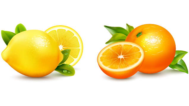 4 appelsiner og 8 sitroner, og da veier hver sitron 60 gram.
