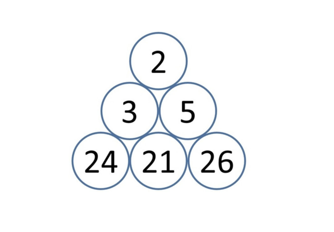 Det øverste tallet i pyramiden er alltid differansen mellom tallene som står under.