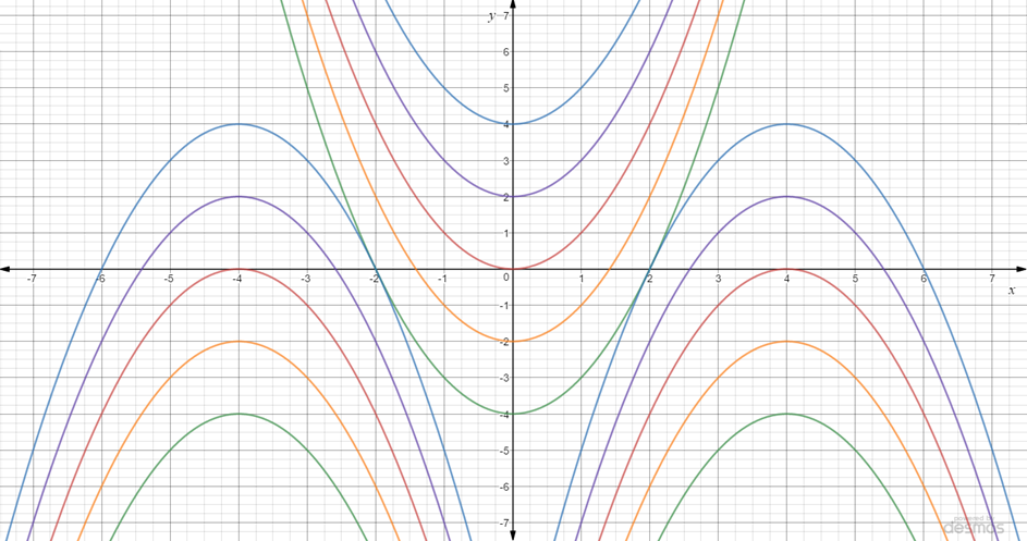 På bildet nedenfor ser du grafen til en gruppe med 15 funksjoner. To av dem har likningene: \(y=x^2\\ y=-(x-4)^2\)