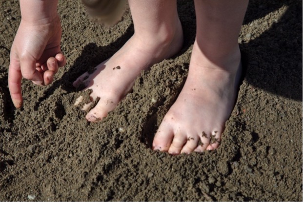 En barfotsti passer godt til de yngste i barnehagen, og de trenger ikke gå på stien. De kan se på den, ta på den, smake på den og krabbe over den også. De kan utforske barfotstien med kroppen og alle sansene sine, og de får både visuelle og taktile erfaringer.