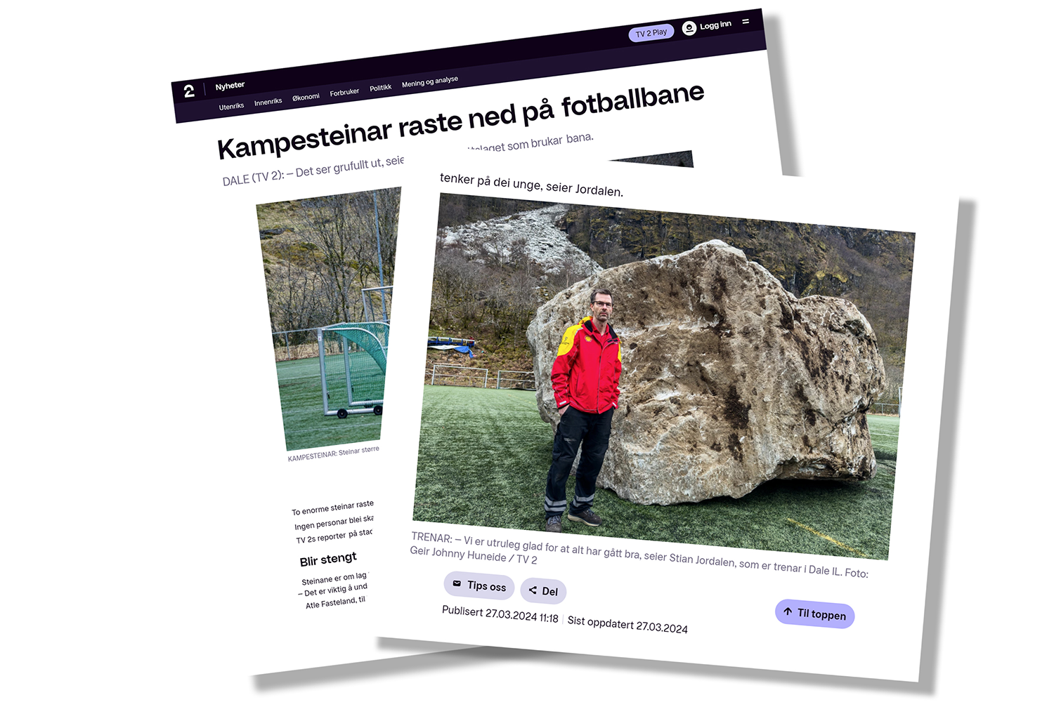 En dag i mars raste steiner ned på en fotballbane i Vaksdal kommune, og vi kunne lese dette i avisa:
