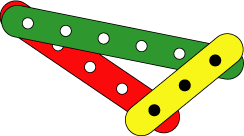 Viktor lagar ein trekant med ein grøn, ein gul og ein raud pinne.