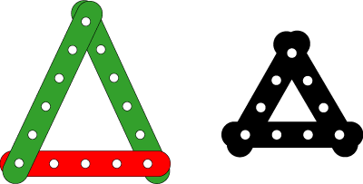 Viktor og Tonje lagar trekantar med eit byggjesett. Dei har mange pinnar med ulik lengd.