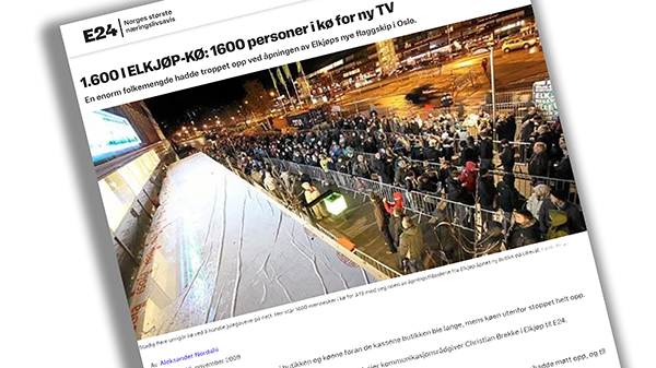 1600 i Elkjøp-kø: 1600 personer i kø for nye TV. Bildet viser også mennesker som står i en rotete kø.