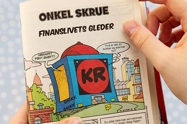 En side fra Donald Pocket som viser onkel Skrues pengebinge.