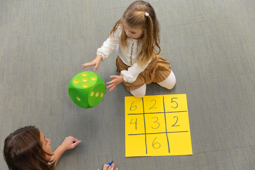 I denne aktiviteten møter barna talsymbol og terningkast ved å spele "tre på rad”. Barna opplever i aktiviteten at tal kan uttrykkjast på ulike måtar, og dei får erfaringar med både å telje og å snakke om tal.